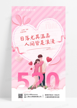 粉色卡通简约玫瑰520情人节表白日ui手机海报