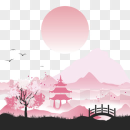 日式风格风景插画矢量素材