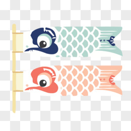 一组手绘国潮风日本代表性素材合集之鱼旗元素