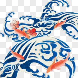 手绘日本和服装饰海浪锦鲤免抠素材