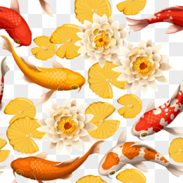 黄色唯美鲤鱼睡莲装饰插画素材库