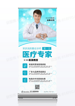蓝色简约时尚医疗专家荣获最佳讲师易拉宝展架