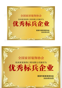 金色质感家居装饰协会优秀企业荣誉公司铜牌荣誉证书