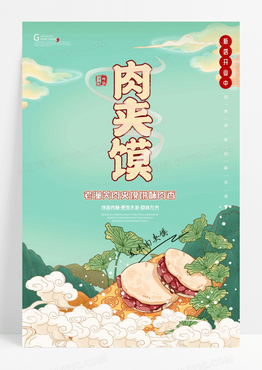 一组手绘插画写实风传统小吃合集之肉夹馍素材
