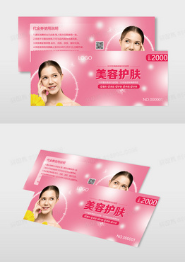 粉色简约大气美容护肤美容院代金券卡券