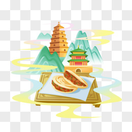 手绘国潮风西安特色肉夹馍大雁塔微景观