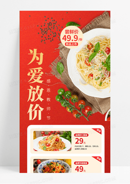 高端红色教师节为爱放价宣传教师节餐饮UI手机海报