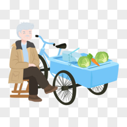 卡通鞭炮老爷爷三轮车摆摊卖菜素材