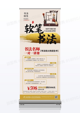 传统中国风少儿书法班招生展架软笔书法