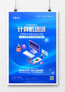 蓝色简约计算机培训宣传海报