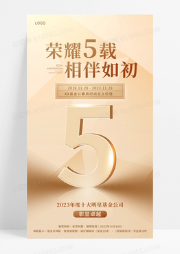 金色金属光效荣耀5载相伴如初周年庆手机宣传海报
