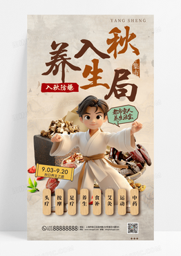 古风养生入秋局秋季养生养生市集艾灸中药海报
