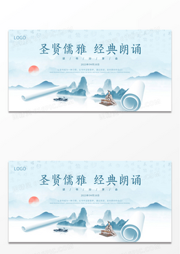蓝色水墨圣贤儒雅经典朗诵读书分享会宣传读书分享会读书