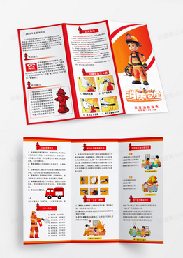 红色插画消防安全消防知识宣传救火灭火消防日三折页设计