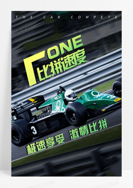 简约大气蓝色比拼速度F1赛车宣传海报