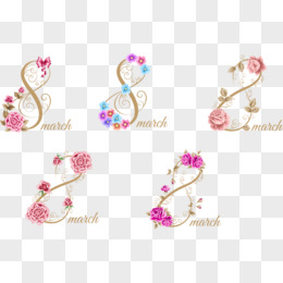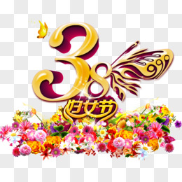 唯美鲜花金色皇冠粉色数字38妇女节艺术字