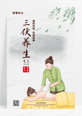 手绘插画风美女三伏天养生做艾炙按摩元素