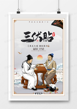 手绘插画风美女三伏天养生做艾炙按摩元素