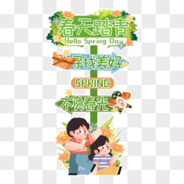 矢量春季春天春日踏青出游拍照手举牌原创元素三