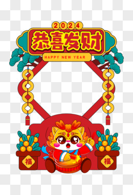 一组2024春节龙年卡通金龙龙爪喜庆元素招财进宝套图合集元素三