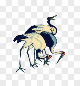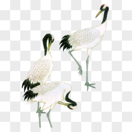 水墨画丹顶鹤三只