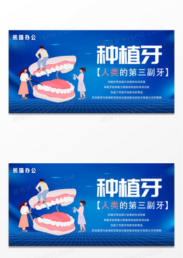 蓝色简约种植牙人类的第三种牙种植牙展板