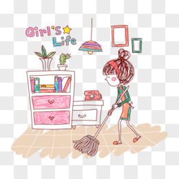 卡通一家三口打扫卫生擦玻璃扫地免抠元素