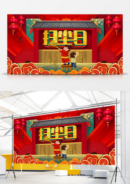 手绘男孩女孩张灯结彩打扫卫生免抠元素