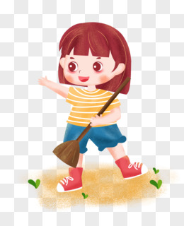 一组手绘卡通中小学劳动课程插画套图之扫地免抠元素