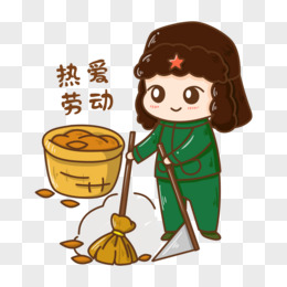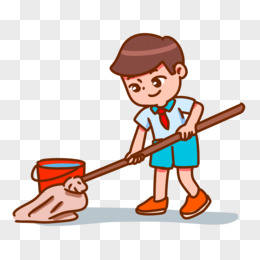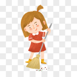 手绘卡通擦窗户拖地搞卫生免抠素材