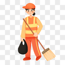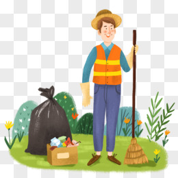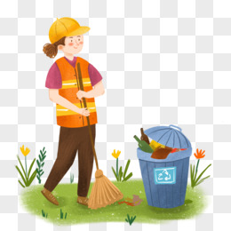 爱护环境之手绘卡通清洁垃圾的环卫工人