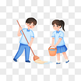 手绘卡通开学季小朋友一起打扫教室场景免抠素材
