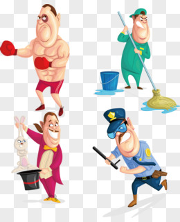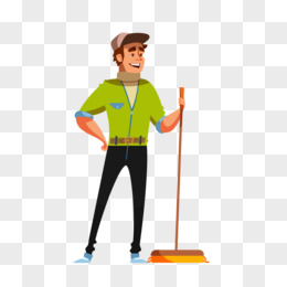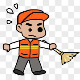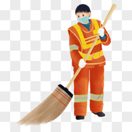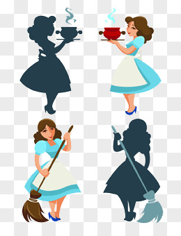 黑白素材卡通人物手绘剪影劳动节日免扣扫地