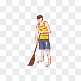 手绘卡通一家三口准备打扫卫生扫地免抠元素