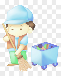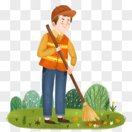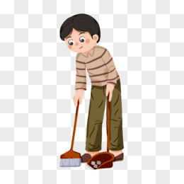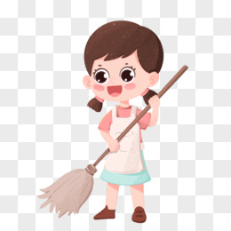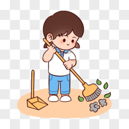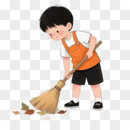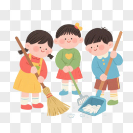 卡通风三个小孩子打扫卫生扫地免抠元素