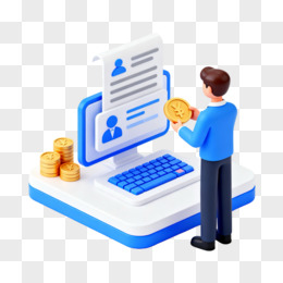 蓝色线稿显示器购物袋购物车货币支付免抠元素