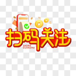 扫码关注黄色艺术字