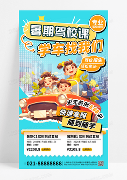 驾校招生汽车公路城市青涩3D卡通海报