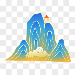 一组矢量国潮风青涩渐变山峰套图系列二元素