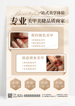 卡其色简约风美甲价目美甲店表促销宣传海报