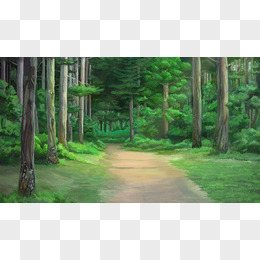 日系插画森林大树绿叶动漫素材