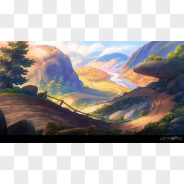 环境渲染效果卡通场景森林