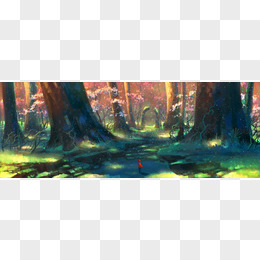 创意手绘绿色的森林丛林