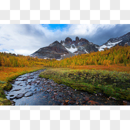 白云雪山森林小溪