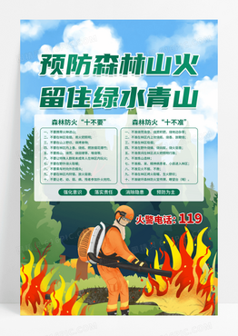 手绘插画风小孩不要在林区玩火防火宣传免抠元素