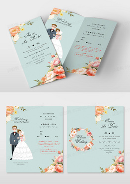 小清新森系手绘花卉西式婚礼请柬婚礼邀请函