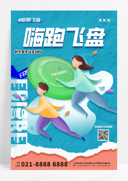 蓝色创意体育运动飞盘嗨跑飞盘海报