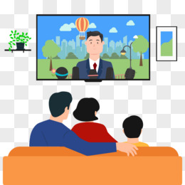 手绘卡通小女孩边吃零食边看电视免抠素材