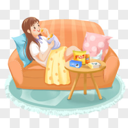 卡通手绘女生靠在沙发上打哈欠免抠元素