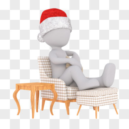 3D红帽立体小人坐沙发上休息